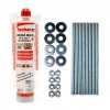 PUSH-IZOCHEM univerzální montážní sada pro pevné upevnění hrazd vhodný set pro pevné bezpečné uchycení. V sadě používáme prémiovou vinylesterovou chemickou maltu od výrobce Fisher, která se využívá pro kotvení podkladů z betonu, tvárnic, plného zdiva, dutých cihel, přírodního kamene a lehkého betonu. Dále set obsahuje podložky - s vnějším průměrem 24 mm a také šestihranné pojistné matice. Set je vhodný pro nejčastější a nejběžnější uchycení sportovního načiní ( jako jsou hrazdy ), které mají průměru otvorů k uchycení 8 - 12 mm.